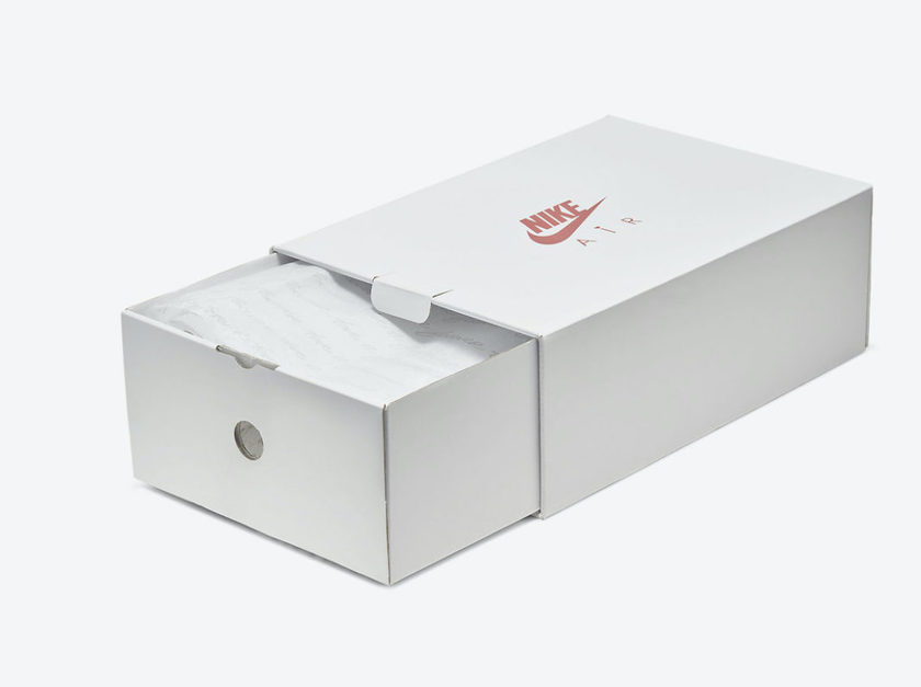 这款配色采用白色和粉色两大色调拼接演绎,大红色鞋舌细节以及 Swoosh 点缀,彰显情人节浪漫氛围。