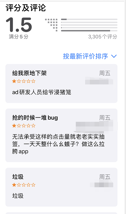 鞋迷们的仇恨值一下被点满,直奔 APP STORE 送上了一波“一星”。 Confirmed APP 的评分经历了 Yeezy 500 黑武士和这一次之后,直接被刷到了 1.5 分(snkrs 有 4.6 分)。
