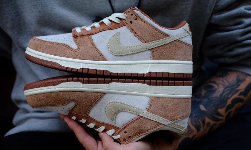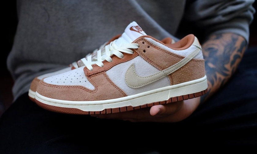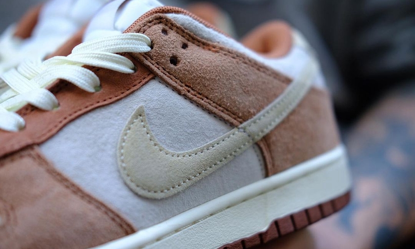 鞋款采用奶茶色与白色拼接,搭配米黄色 Swoosh ,并以翻毛皮材质塑造,整体气质十分温和讨喜,别有一番“暖冬”气质,男女通杀~