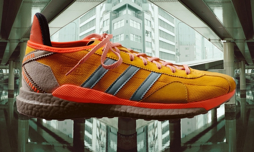 本次三方联名包括 Tokio Solar Hu 鞋款,共有以橙、绿双色为主调的两款配色,饰以日文文字细节点缀,吸睛度极强。