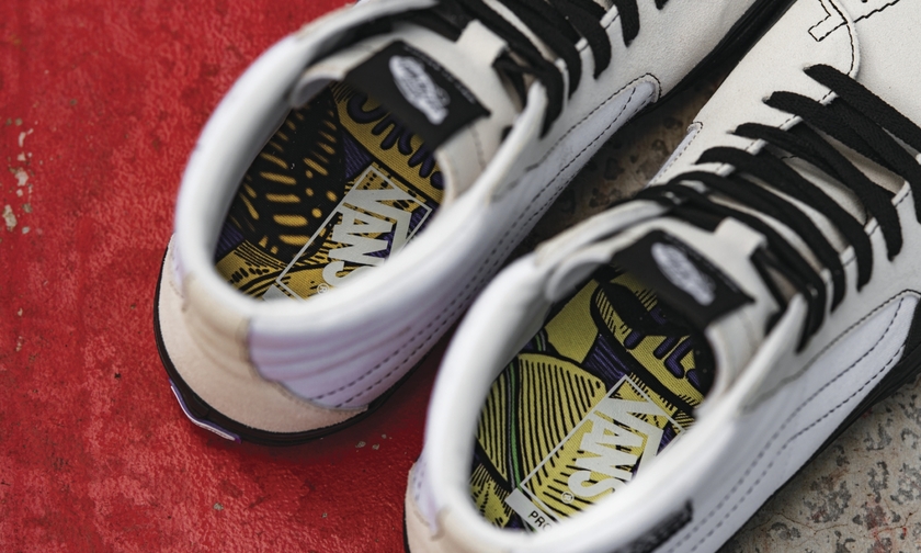简单的黑、白撞色设计,简约而不失视觉张力。另外,这款 Jackson Pilz 专属版本 Sk8-Hi Pro 还在鞋头部分加入橡胶盖处理,大大提升了鞋子在滑板运动中的耐用性。