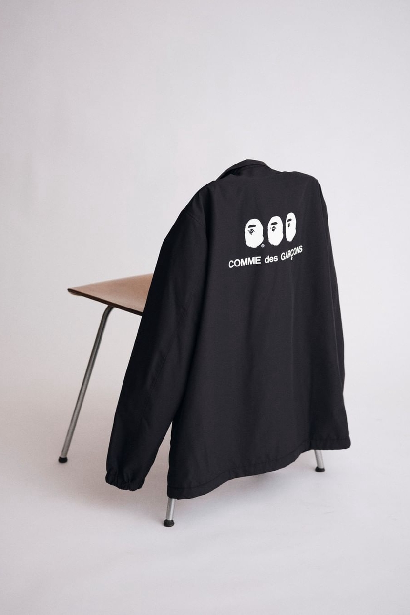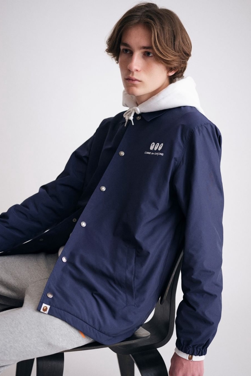 BAPE 最近与 COMME des GARÇONS 迎来全新联乘系列,系列包括连帽卫衣外套、衬衫、T 恤、教练夹克、条纹 T 恤等单品。设计上结合 BAPE 经典猿人迷彩与 COMME des GARÇONS 品牌 logo 点缀。据悉,此次合作将于 12 月 19 日正式上线,有兴趣的朋友不妨保持关注。