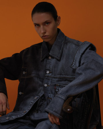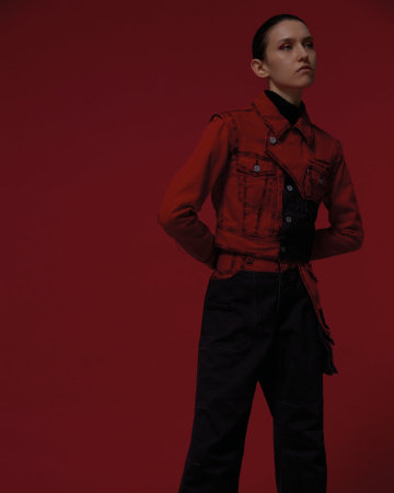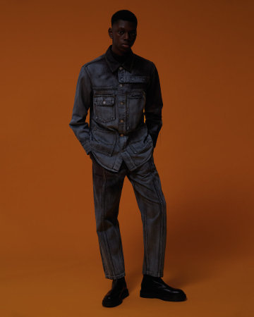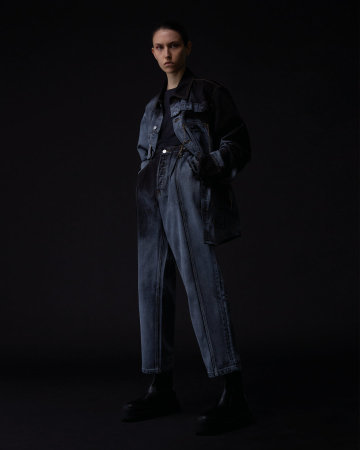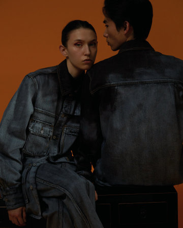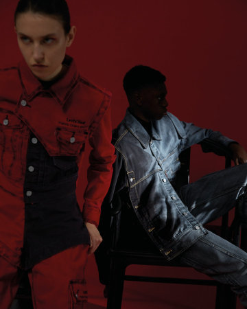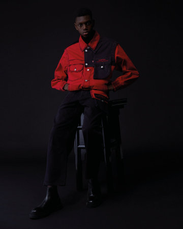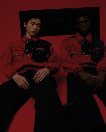 亮点单品为红黑解构撞色牛仔,灰黑扎染牛仔外套与扎染牛仔裤。其中红黑解构撞色牛仔通过经典的中国新年红色充分诠释“中国制造”的复古情怀,而另两款扎染牛仔外套与扎染牛仔裤,则搭配中国“工装时代”工人们的标志性蓝及蓝黑渐变示人,硬朗却又不羁。