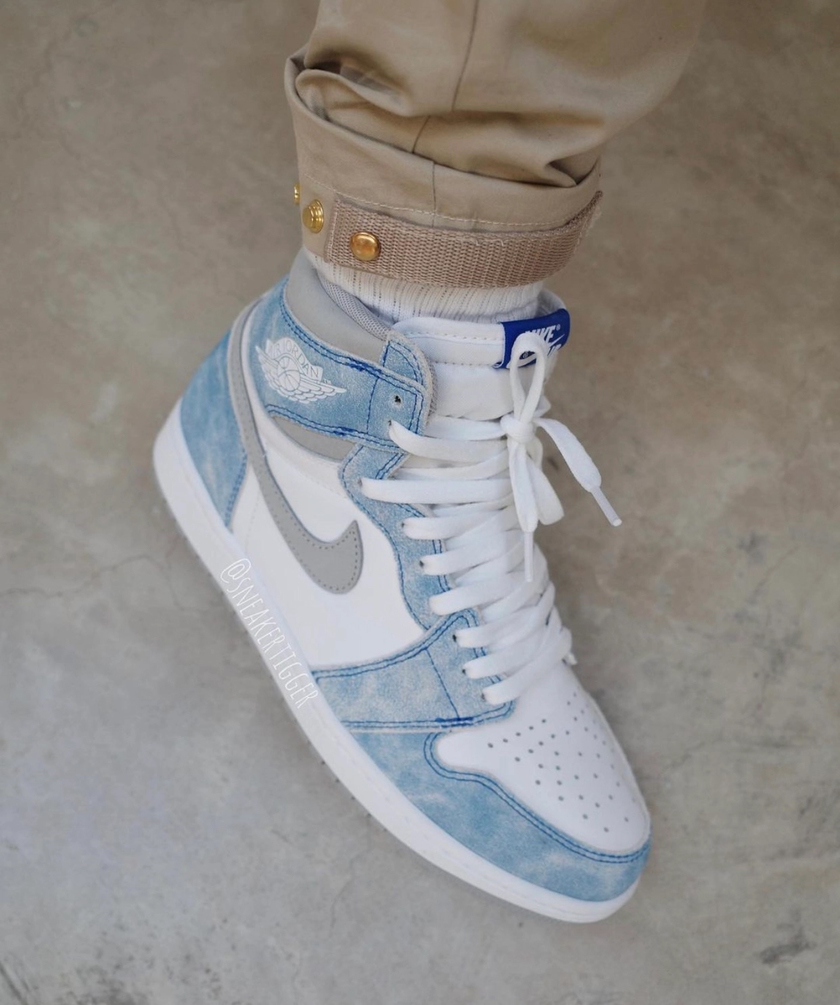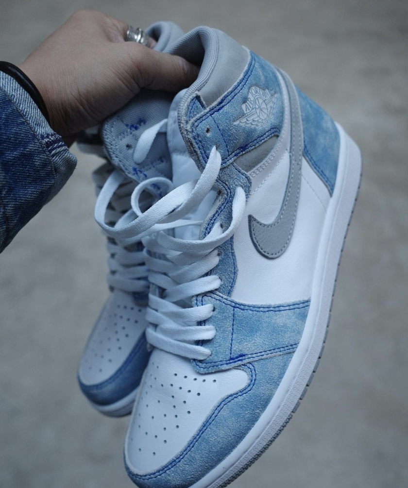 这款配色以褪色效果的蓝色拼接白色与灰色示人,绒面革材质与皮革塑造,还带来独特做旧复古风格。