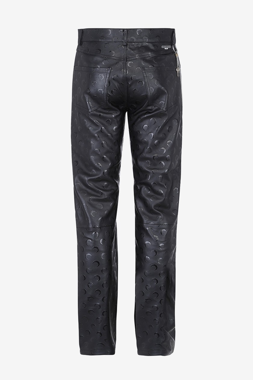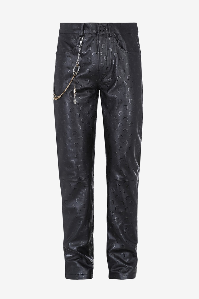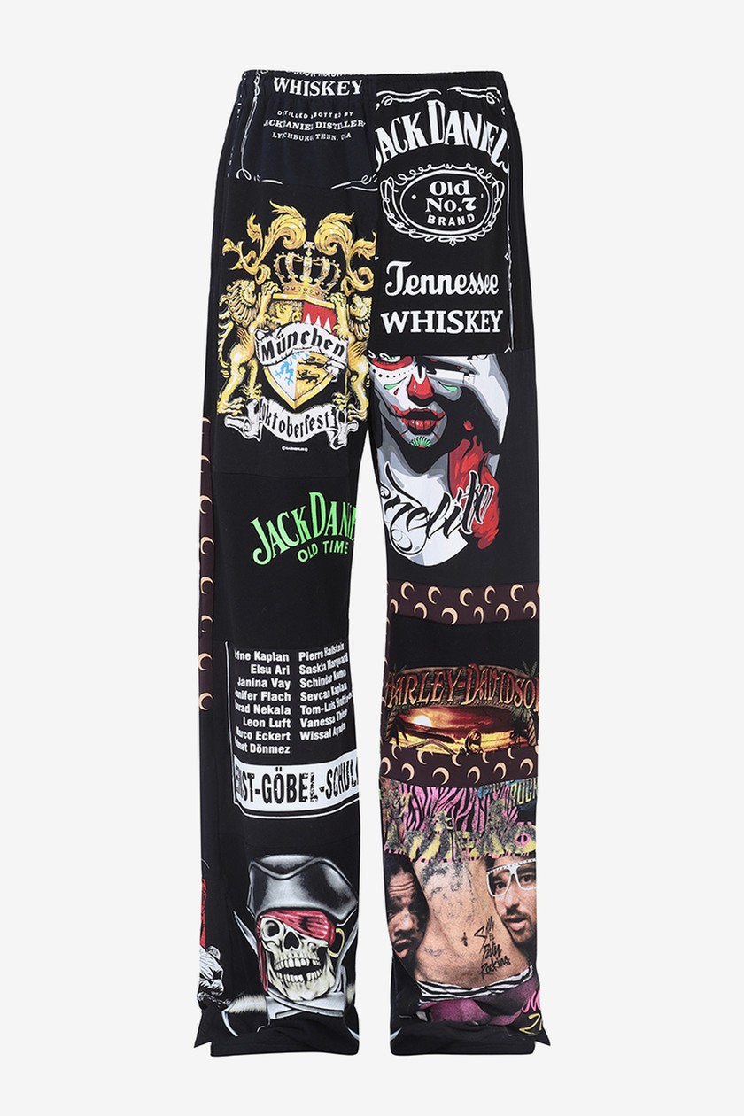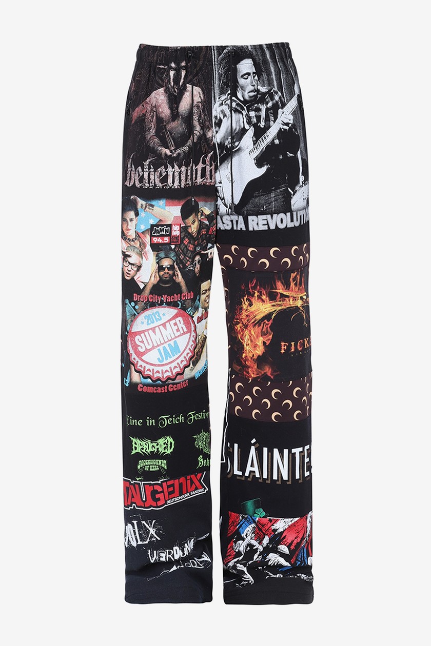 系列带来丹宁夹克、裤装、羽绒外套、打底衫、头套等单品,在设计上主要以 Marine Serre 标志性半月元素为主,搭配朋克风印花,抢眼度十足。