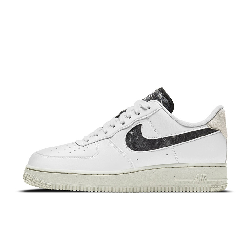 其鞋身以白色为基础,较为独特的设计是酷似大理石纹理的黑色鞋舌与外侧 Swoosh 。搭配浅灰麂皮内侧 Swoosh 以及后跟细节,呈现出与众不同的阴阳撞色设计,整体氛围既简约百搭又不失亮点。