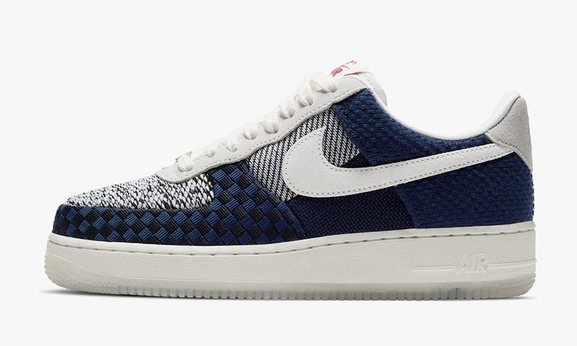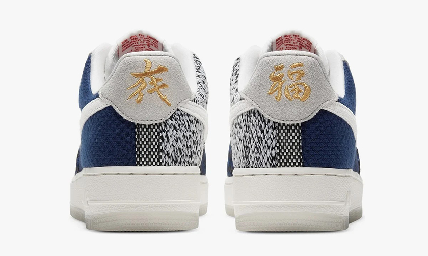 这款全新的 Nike Air Force 1“Sashiko”延续了该系列一贯的设计风格,以黑、白、深蓝为主色,饰以多种刺绣编织花纹呈现鞋面。