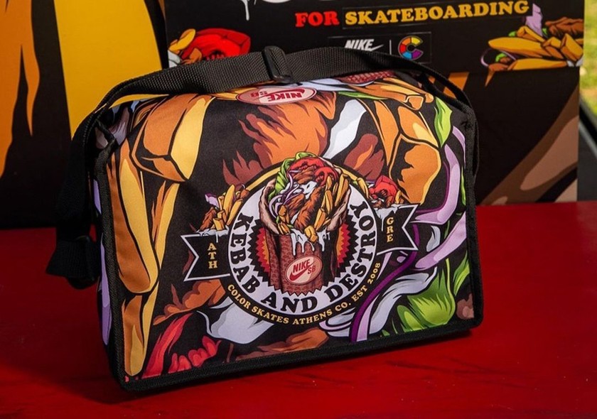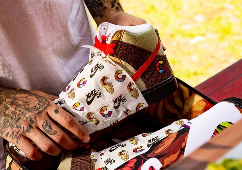 近日曝光了一款全新的 Nike 与雅典滑板店铺 Color Skates 联名推出的 SB Dunk Hi 鞋款,以希腊美食 “Kebab” 为设计来源,而且还有特殊包装!