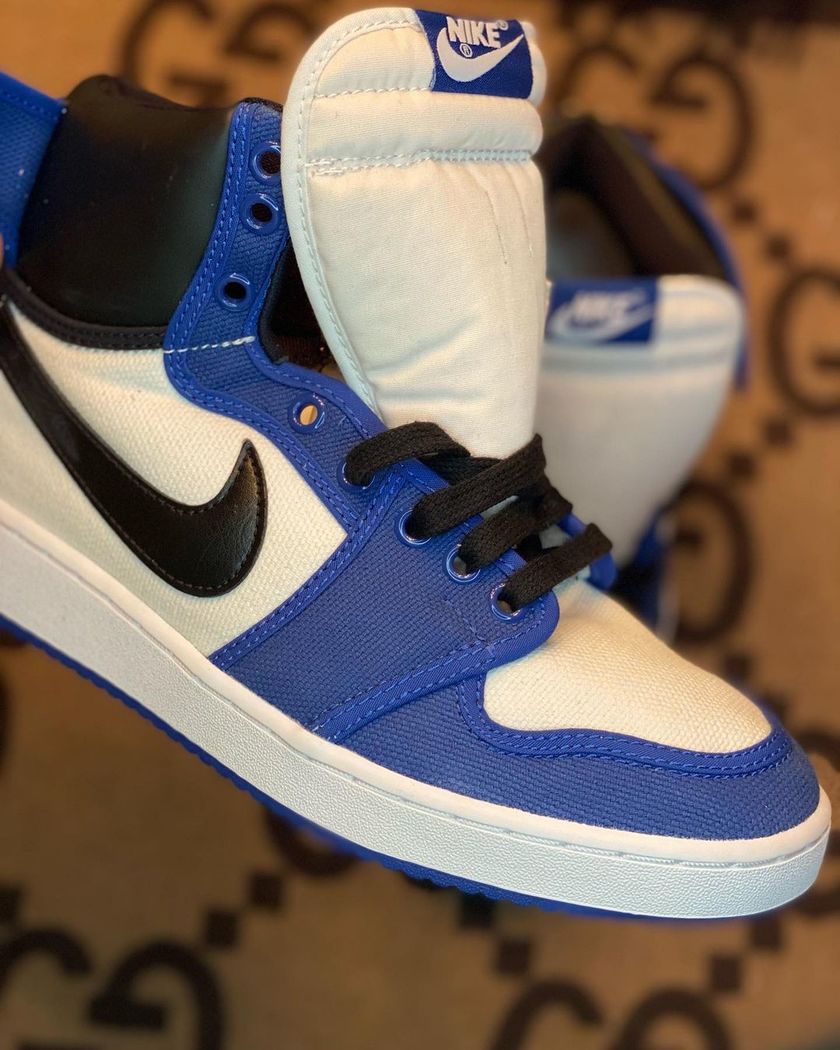 最近一款全新的 Air Jordan 1 KO “Storm Blue”在网络上曝光了实物图。整双鞋使用蓝白黑搭配,与经典的小闪电非常相似。鞋身材质使用大面积的帆布制成, Swoosh 和鞋帮却使用人造皮材质,看上去层次分明,穿上脚也会带来更好的透气性。