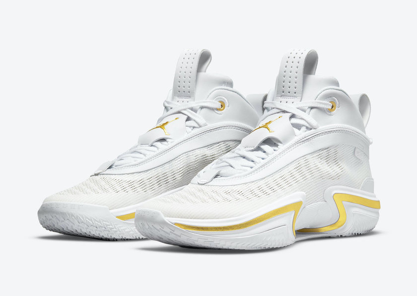 近日全新 Air Jordan 36 “White Gold” 在网络上曝光了官图。整双鞋采用大面积白色作为主色调,鞋身多处使用金色点缀,视觉效果十分高雅。