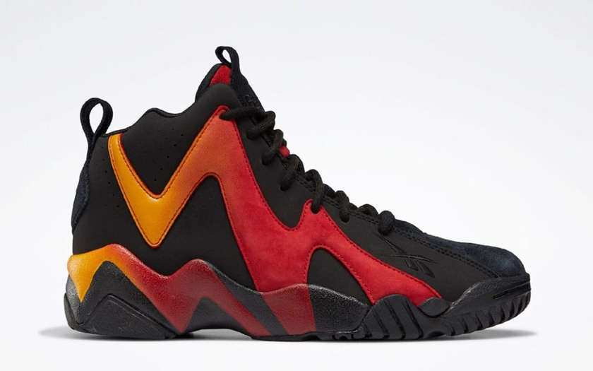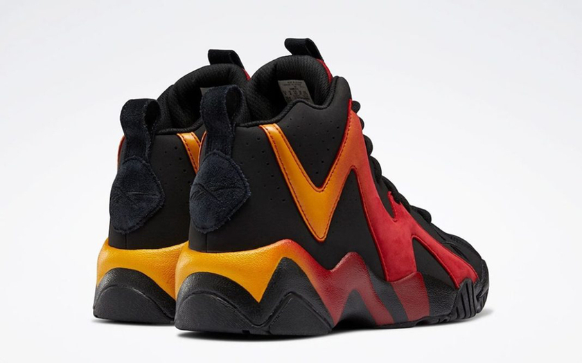 最近 Reebok 宣布「雨人」肖恩·坎普的签名鞋 Kamikaze II 岩浆配色即将回归。整双鞋以黑色为基础,鞋侧面搭配了粗犷的黄红色渐变线条,仿佛岩浆一般,被广大玩家称为「火山」。中底使用久违了的 Hexalite 蜂巢缓震科技。