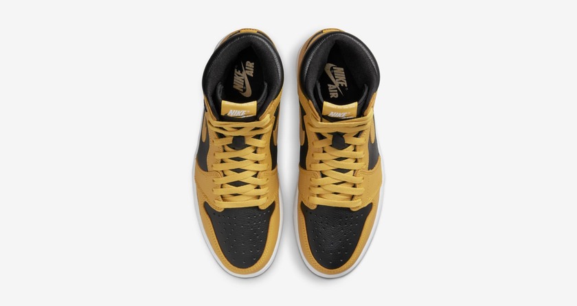 最近一款全新配色的 Air Jordan 1 High OG “Pollen” 在网络上曝光了官图。整个鞋身以黑黄双色为主调,搭配白色的中底线条,酷似经典的“武当”配色。