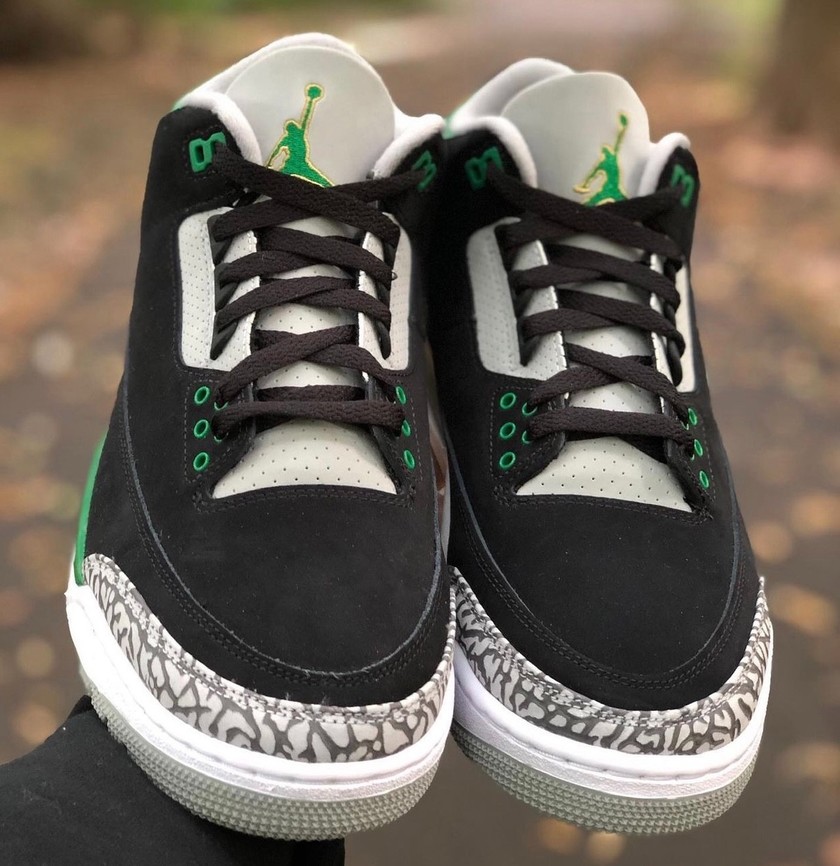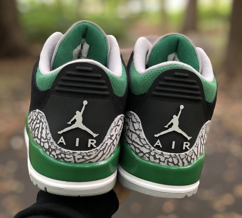 最近一款全新的 Air Jordan 3 “Pine Green”在网络上曝光了实物图。整个鞋面采用黑色麂皮为基础打造,中底、鞋帮和 Swoosh logo 使用绿色搭配,Air Jordan 3 最具有标志性的爆裂纹使用灰色呈现。视觉效果十分出众。据悉这双全新的 Air Jordan 3 “Pine Green” 会在 11 月 13 日正式发售,发售价格为 190 美元。