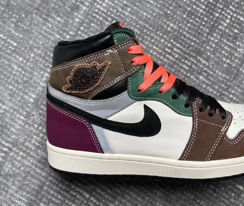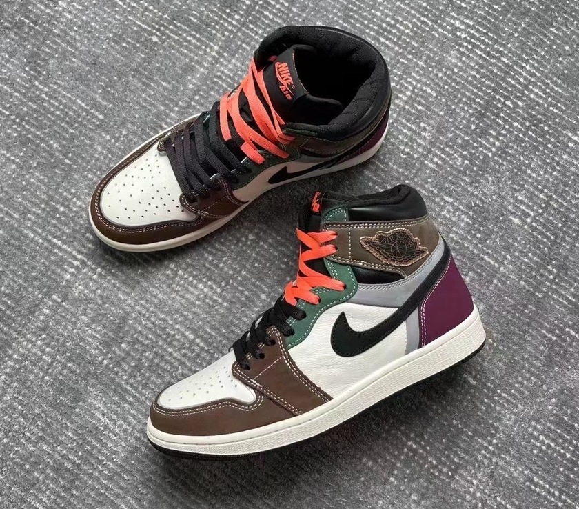 最近一款全新配色的 Air Jordan 1 High OG “Hand Crafted”在网络上曝光了实物图。整双鞋以经典高帮九孔 Air Jordan 1 为基础,采用多个颜色拼接的设计,甚至连鞋带都是黑橙双色组合而成,视觉效果十分时尚。