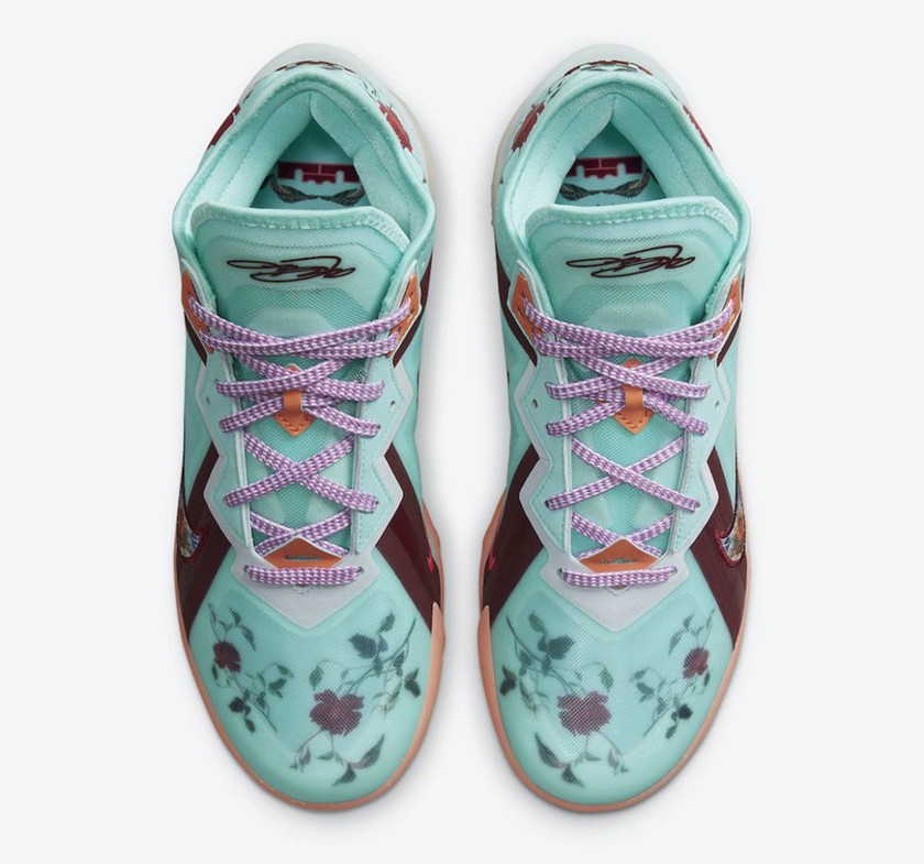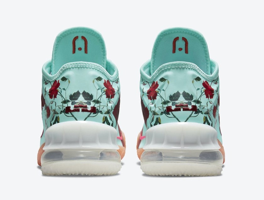 最近全新的 Nike LeBron 18 Low “Floral”在网络上曝光了官图。整个鞋身采用绿松石色搭配酒红色的设计,搭配鞋头和鞋跟花卉图案以及紫色的鞋带,视觉效果层次感十足,全掌 Zoom Air 气垫的基础上后掌还额外搭载 Max Air 气垫,缓震表现毋庸置疑。据悉这双全新的 Nike LeBron 18 Low “Floral” 会在今年年内正式发售,发售价格为 160 美元。