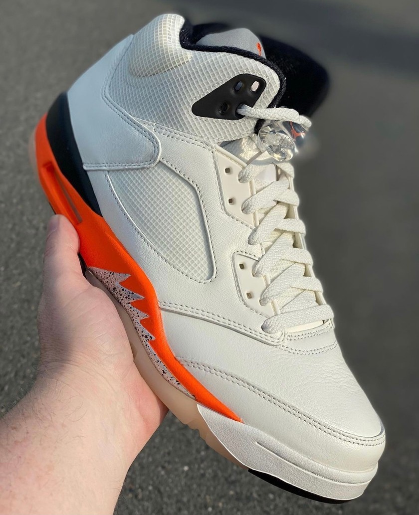 最近一款全新扣碎篮板配色的 Air Jordan 5 “Shattered Backboard”在网络上曝光了实物图。整个鞋身由扣碎配色经典的黑白橙三色组成,Air Jordan 5 鞋款标志性的鞋身两侧网格变为布面材质,水晶外底则使用淡黄配色,避免了氧化发黄的问题。据悉这双全新的 Air Jordan 5 “Shattered Backboard”会在 9 月 25 日正式发售,其他发售信息目前未知。