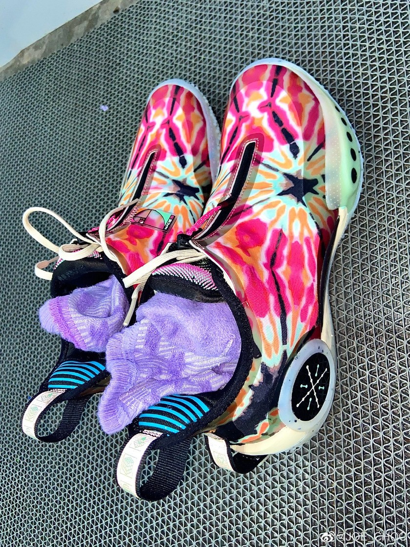 最近韦德之道 9 的设计师 JOE_CHOO 在社交媒体上曝光了一款全新配色的韦德之道 9。整个鞋面印满了粉、橙、绿等彩色不规则组合的图案,视觉效果炸裂。目前该鞋款还未曝光具体发售信息。