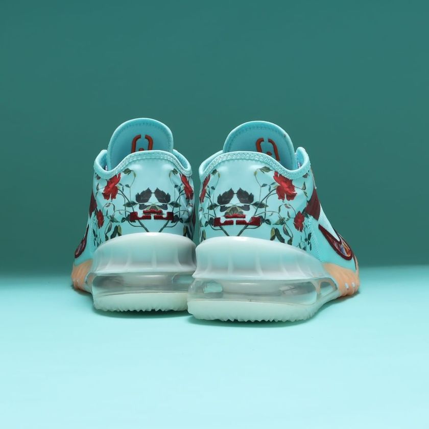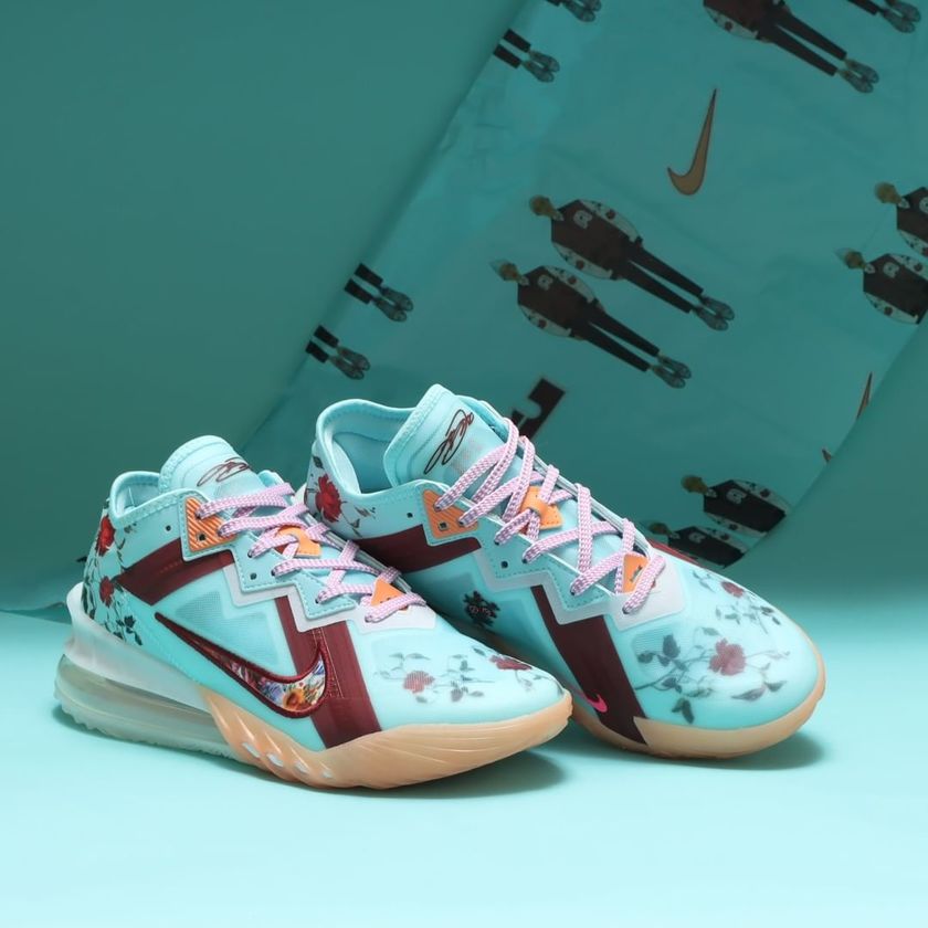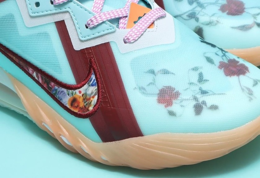 最近一款全新配色的 Nike LeBron 18 Low “Floral” 在网络上曝光了实物图。整双鞋采用绿松石色搭配酒红色的设计,鞋头和鞋跟处还绣有花卉图案,鞋带则采用了骚气的紫色,视觉效果十分惊艳。全掌 Zoom Air 气垫加上后掌 Max Air 气垫的配置保证了恐怖的缓震性能。据悉这双全新的 Nike LeBron 18 Low “Floral” 会在 9 月 18 日正式发售,发售价格为 19250 日元。