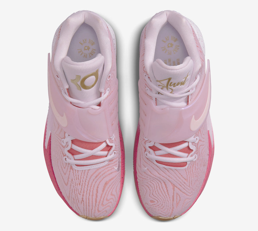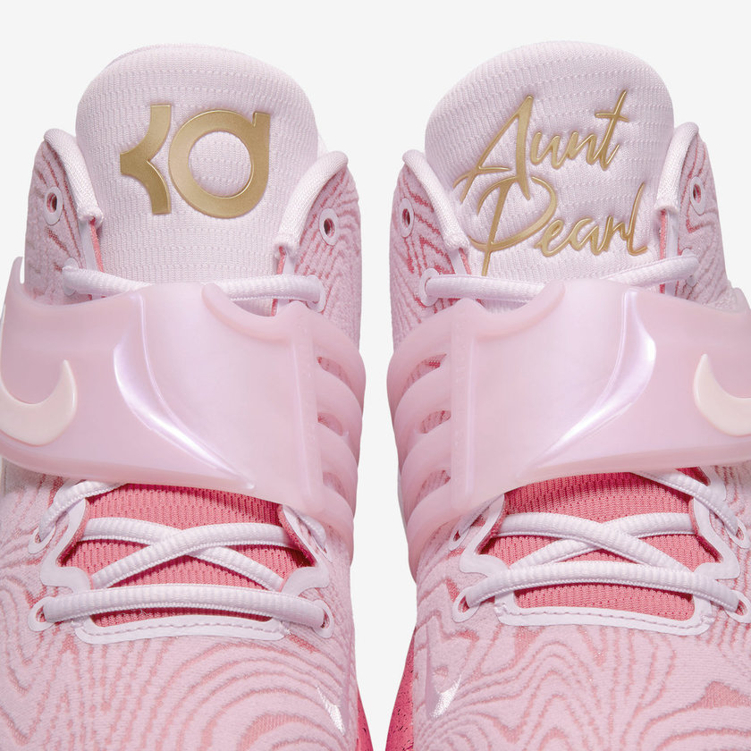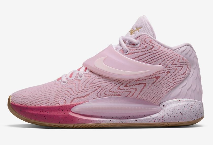 最近一款「抗乳腺癌」配色的 KD14 公布了官图。整双鞋采用大面积的粉红色为主调,搭配生胶外底,视觉十分出众。细节上的亮点在翅膀形状的鞋身绑带,直呼主题。配置方面全掌 Zoom Air 的运用保证了实战性能。据悉这双全新的 Nike KD 14 “Aunt Pearl” 会在 2022 年正式发售,发售价格为 160 美元。